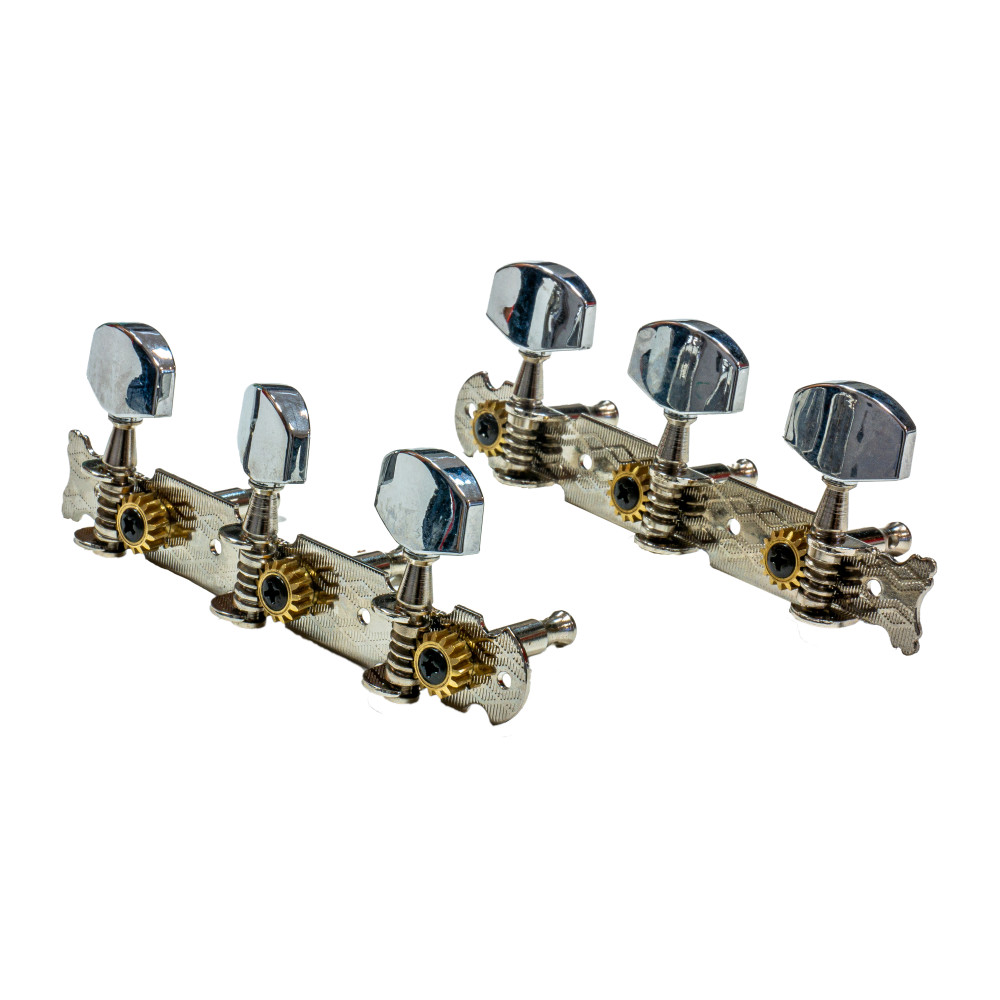 Clavijero niquelado para guitarra clásica con tubos y palomillas de metal.